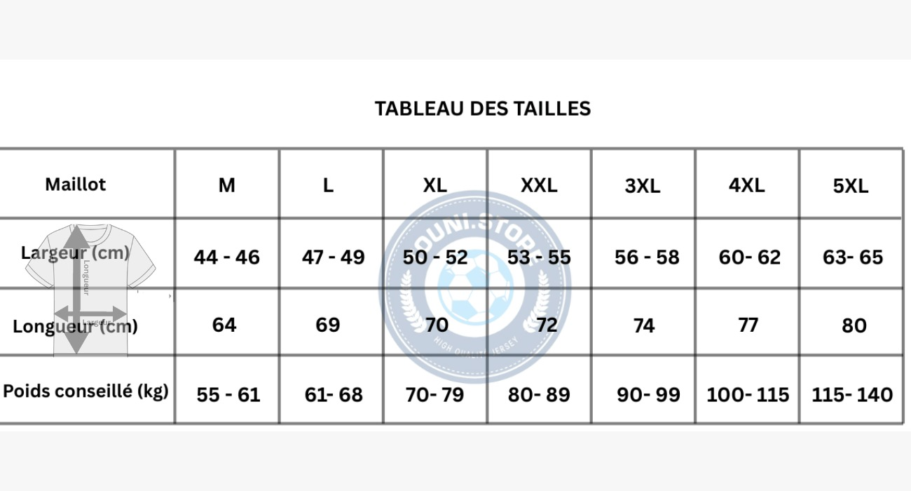 اطلب الآن وعبّر عن انتمائك بفخر! 🇲🇦 - دليل المقاسات - TABLEAU DES TAILLES